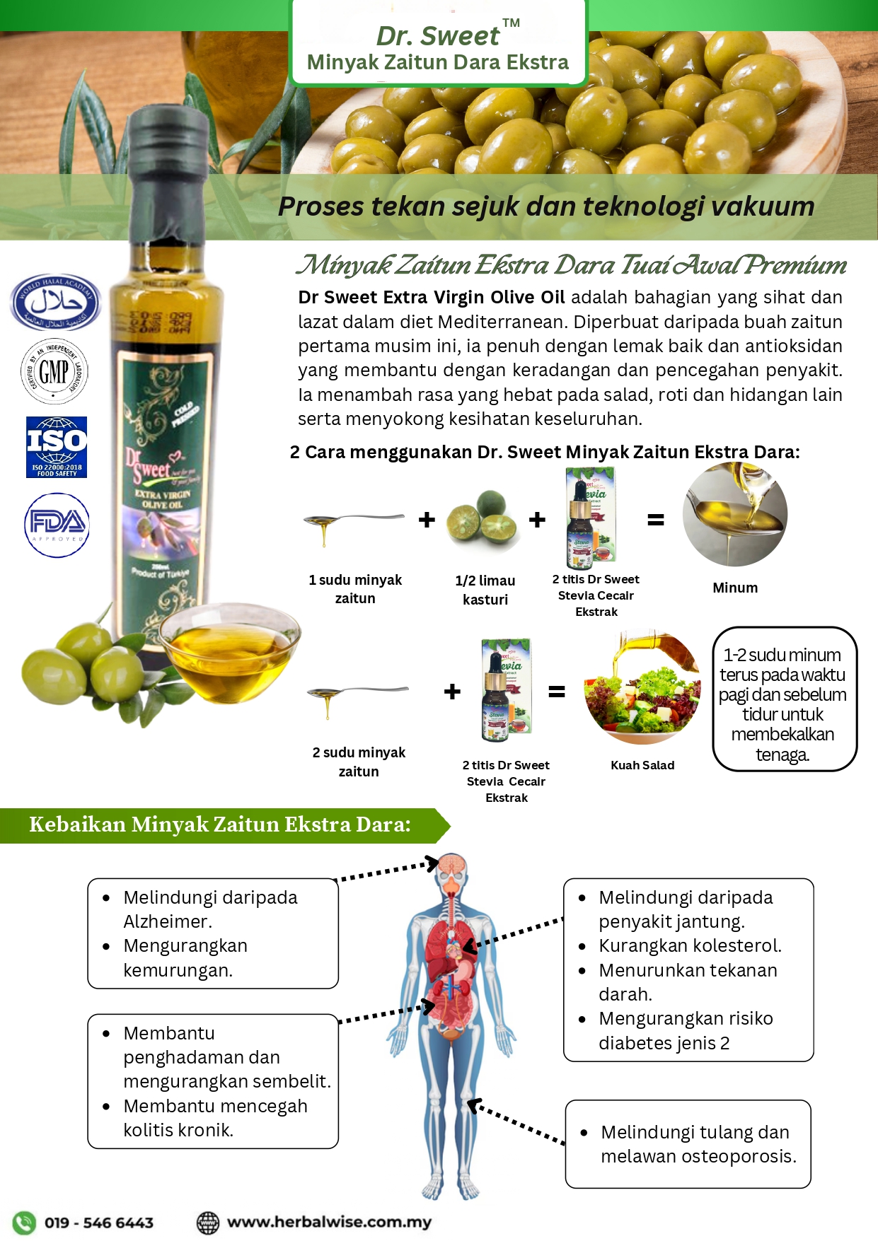 6. Lowers blood pressureProduced from cold-pressed organic olive. We are not a trading company. We are manufacturer. We have our farm in Malaysia and Türkiye. We have our olive farm. We don’t use any chemical ingredients.